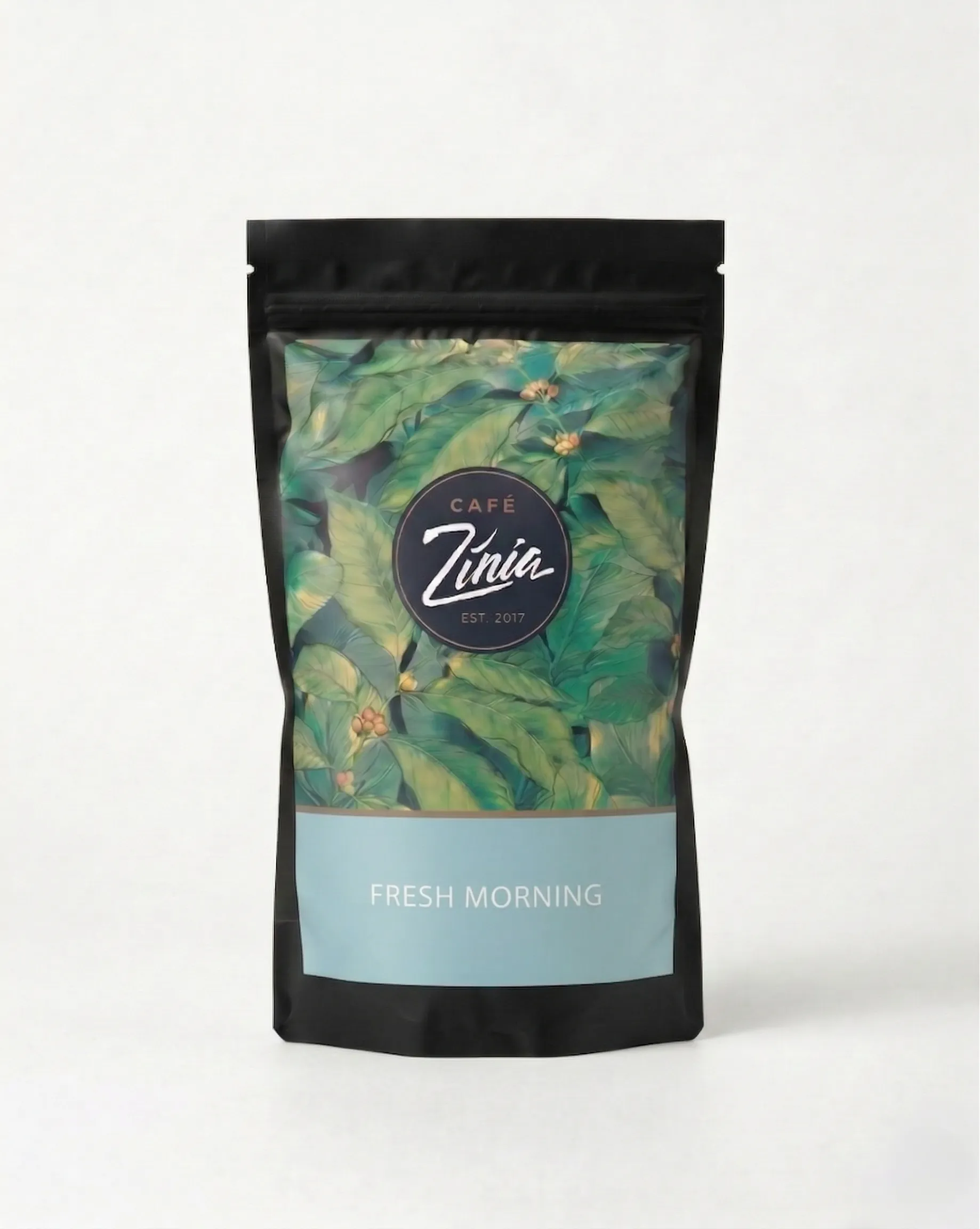 Cafe Zinia Fresh Morning to kawa zdecydowana i intensywna. Mieszanka najlepszych ziaren Robusty z Indii. Głęboki i wyrazisty aromat doda energii na cały poranek, każdy łyk odświeży umysł, pozwalając przygotować się na dzień pełen wyzwań.